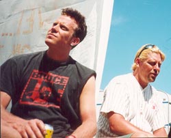 varmt och vi satt utanför bussen och bättrade på solbrännan, vätskade oss och